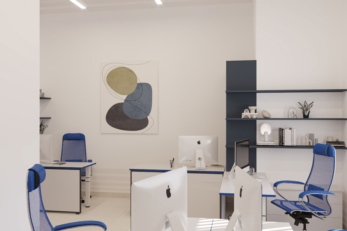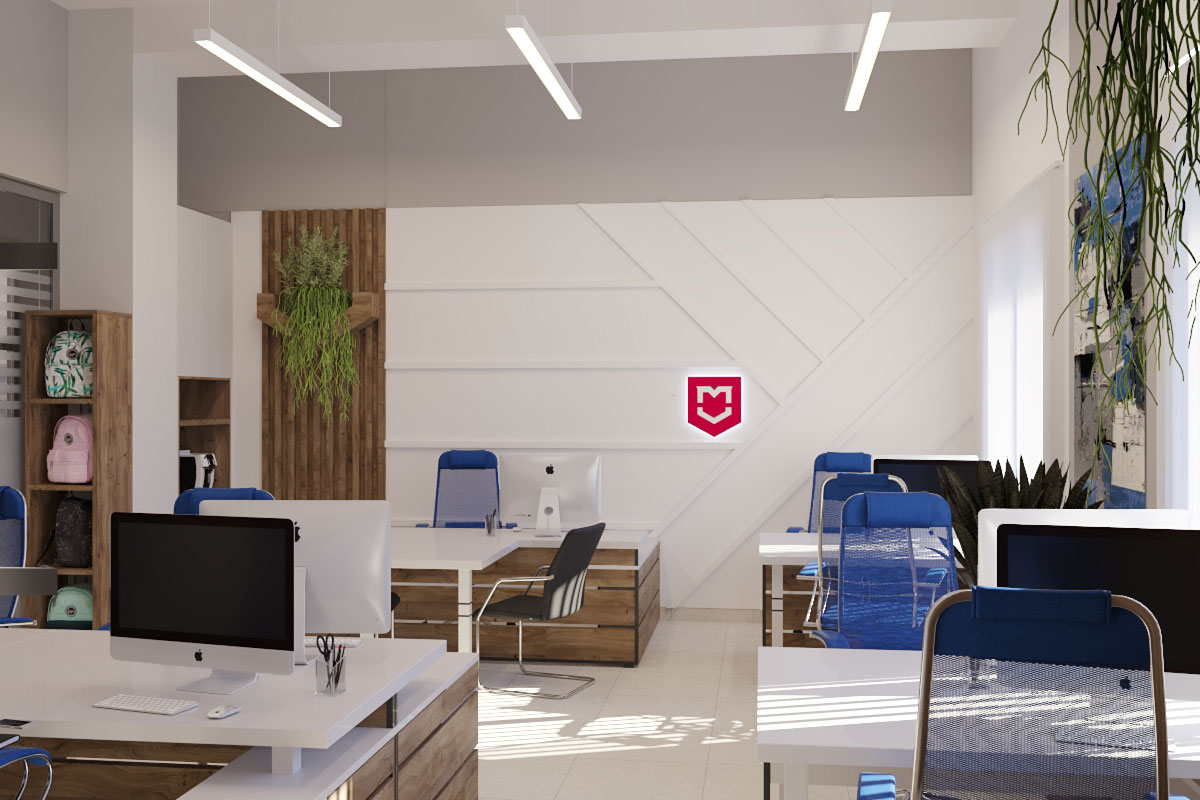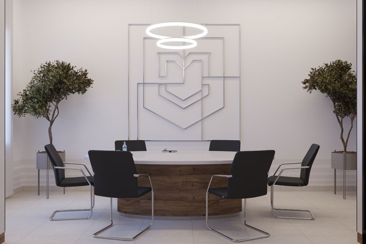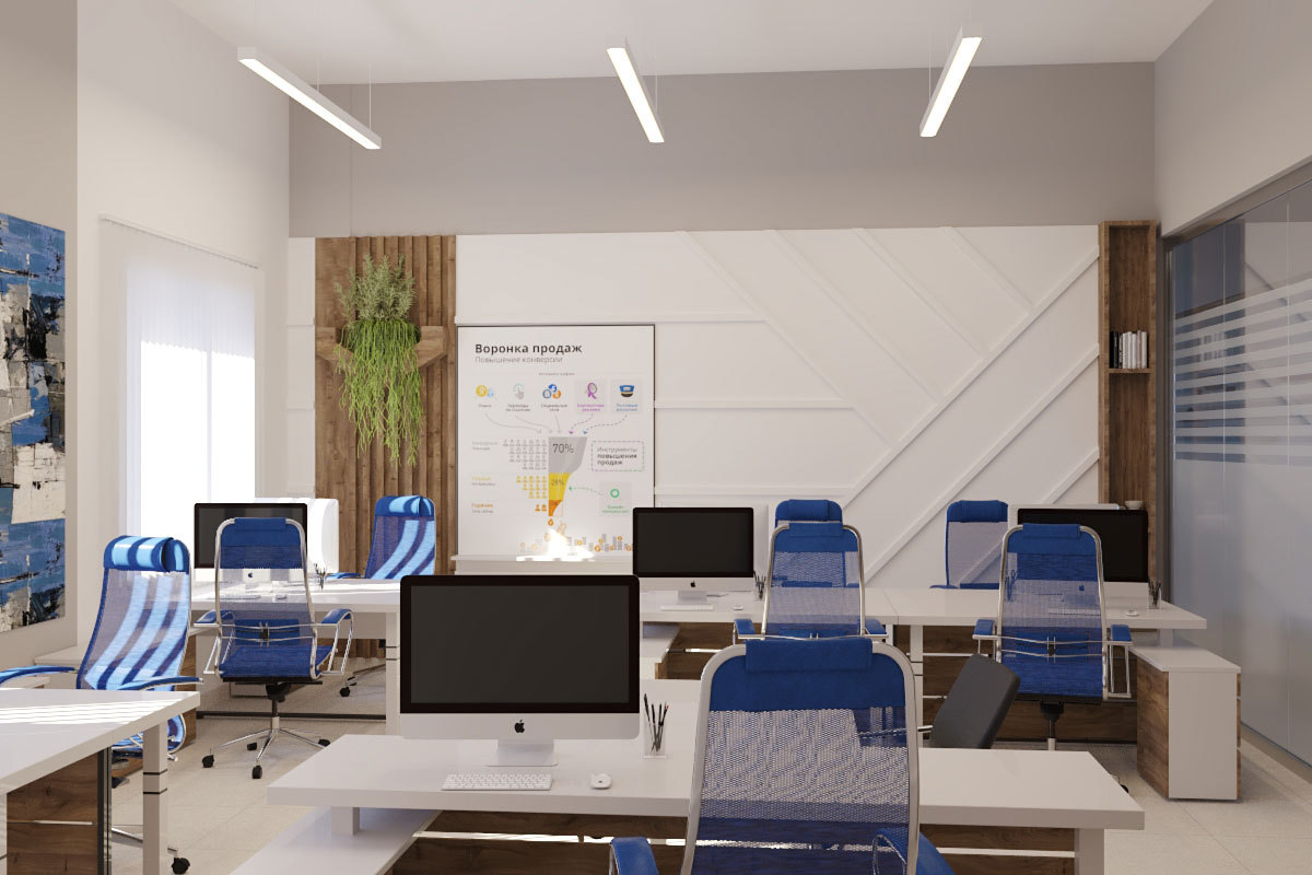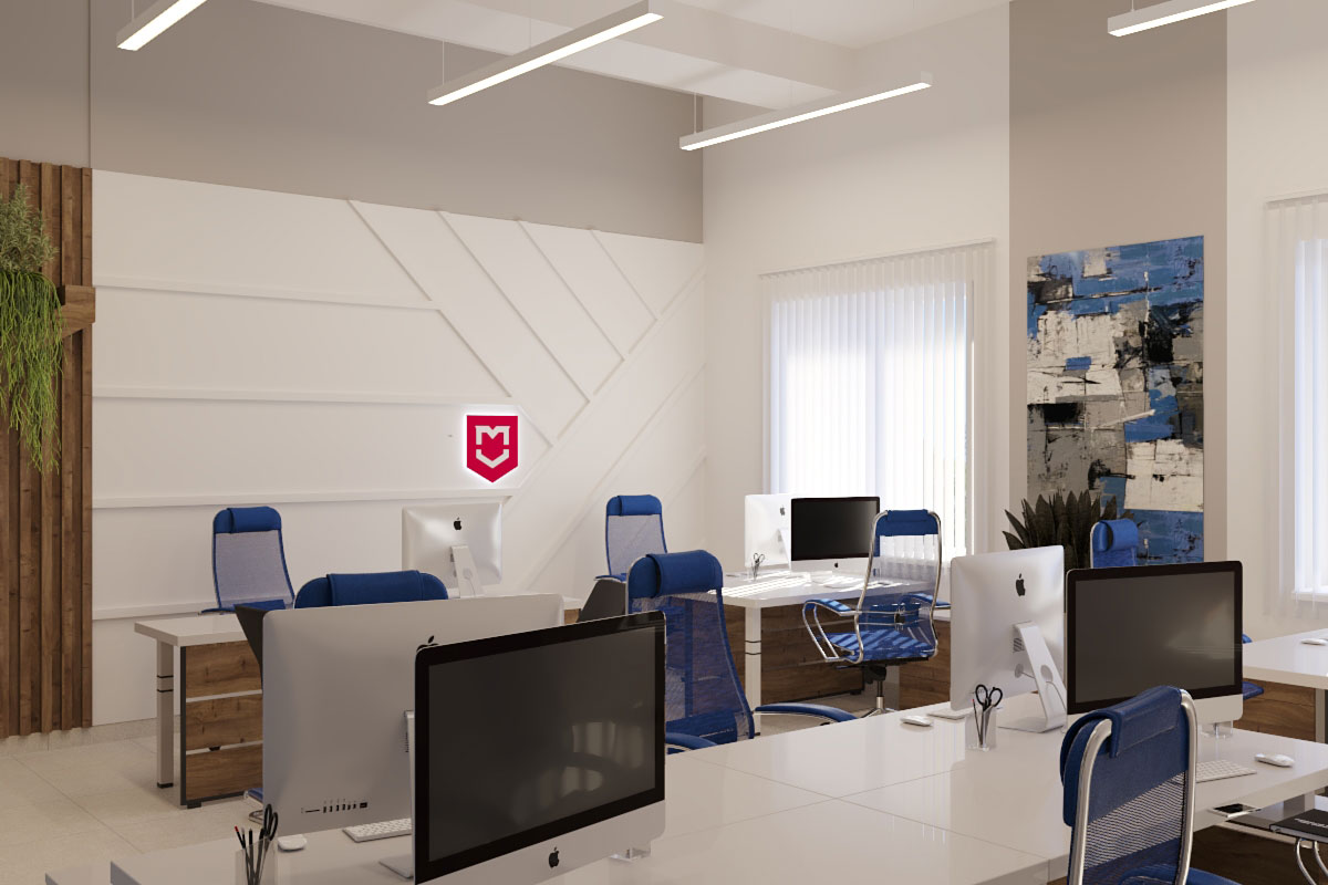Виды работ: разработка дизайн-проекта офиса компании, 3-D визуализация, 3D тур по помещениям.