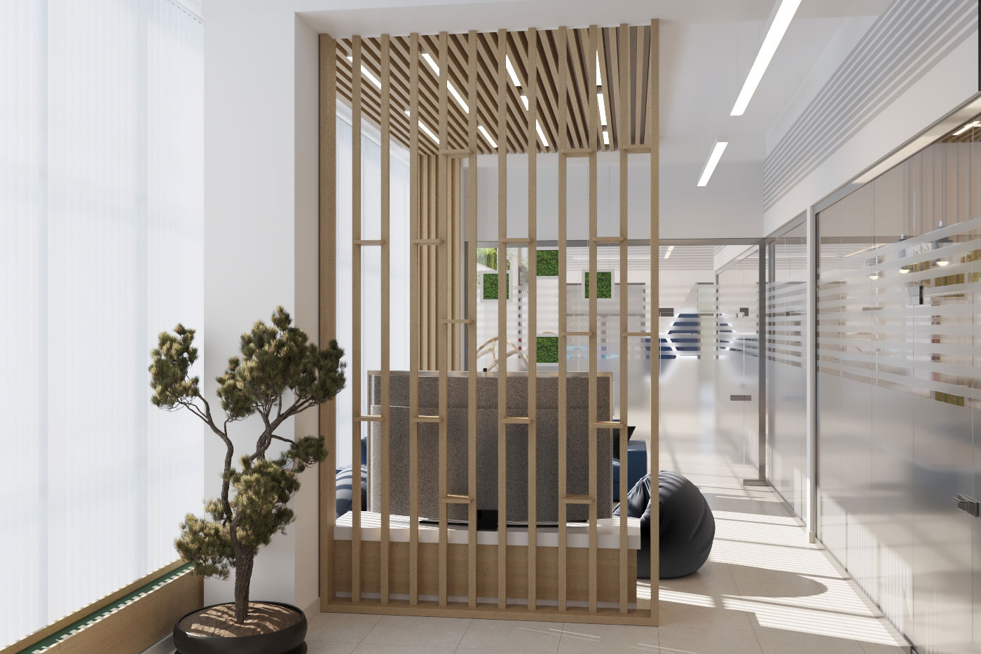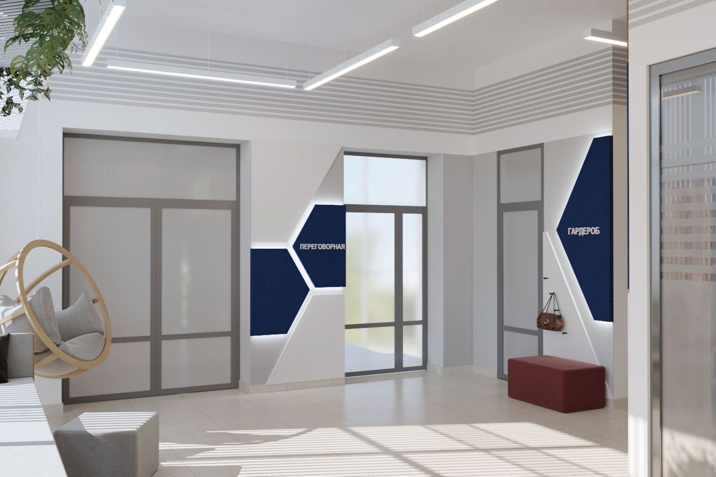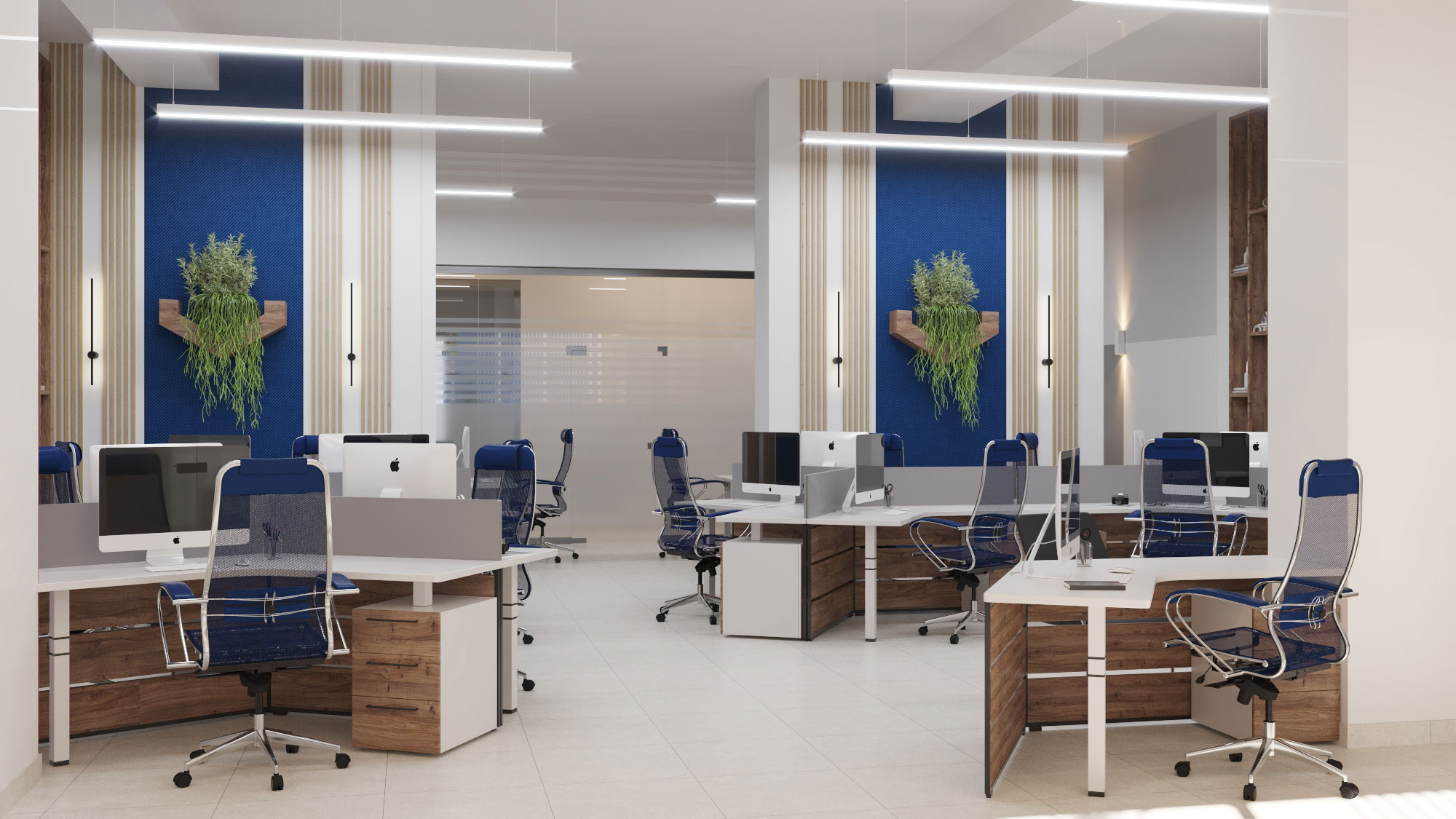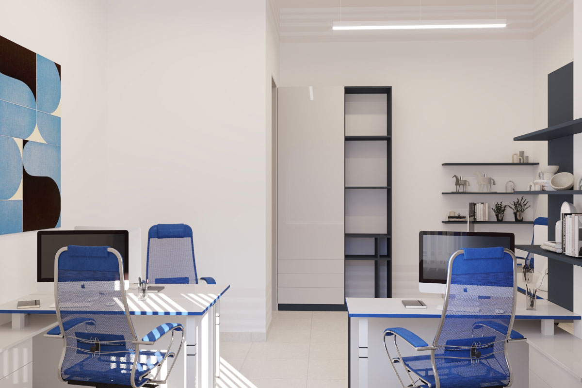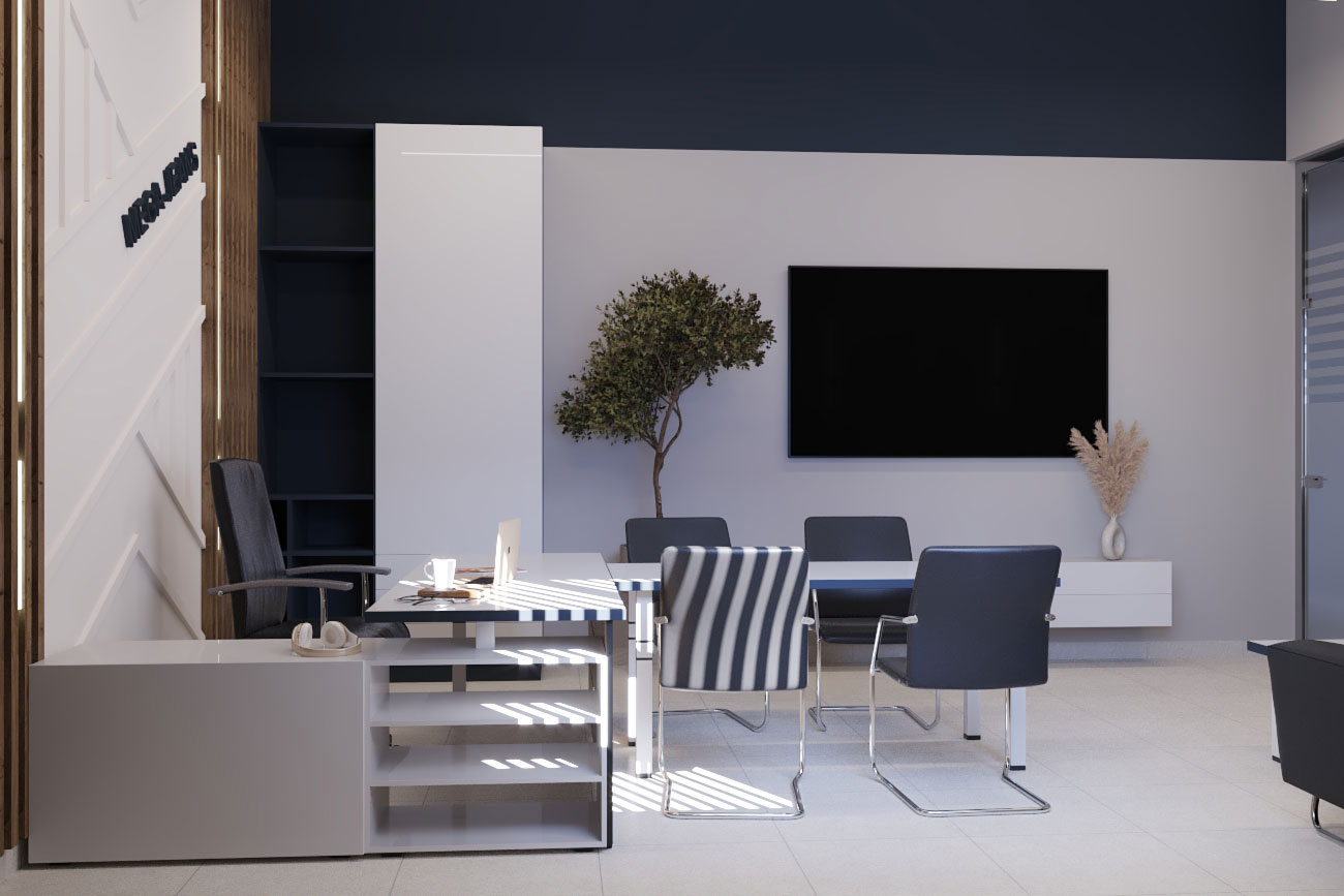 Виды работ: разработка дизайн-проекта офиса компании, 3-D визуализация, 3D тур по помещениям.