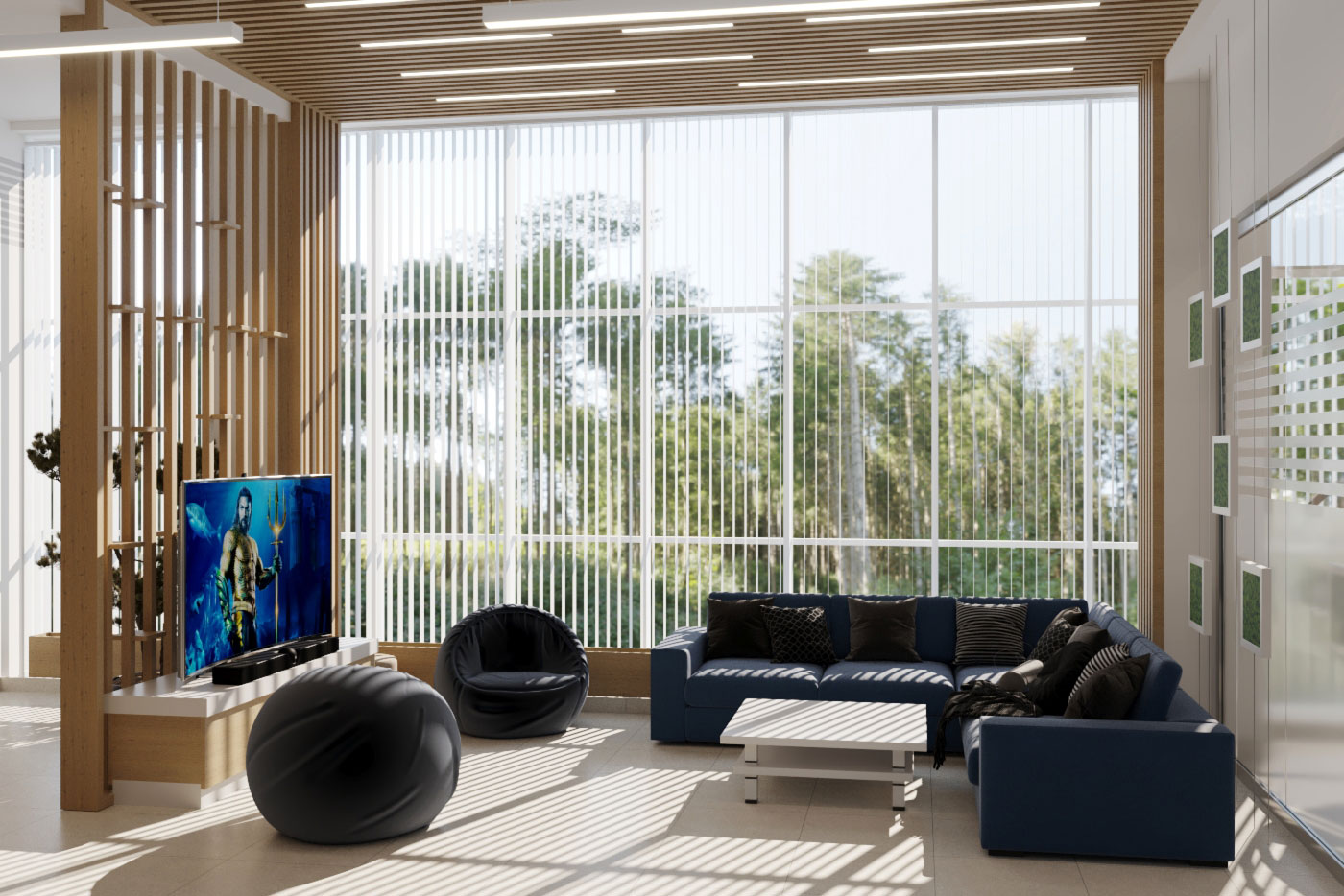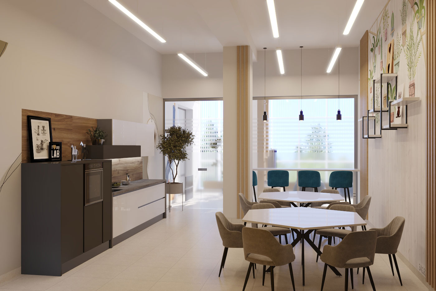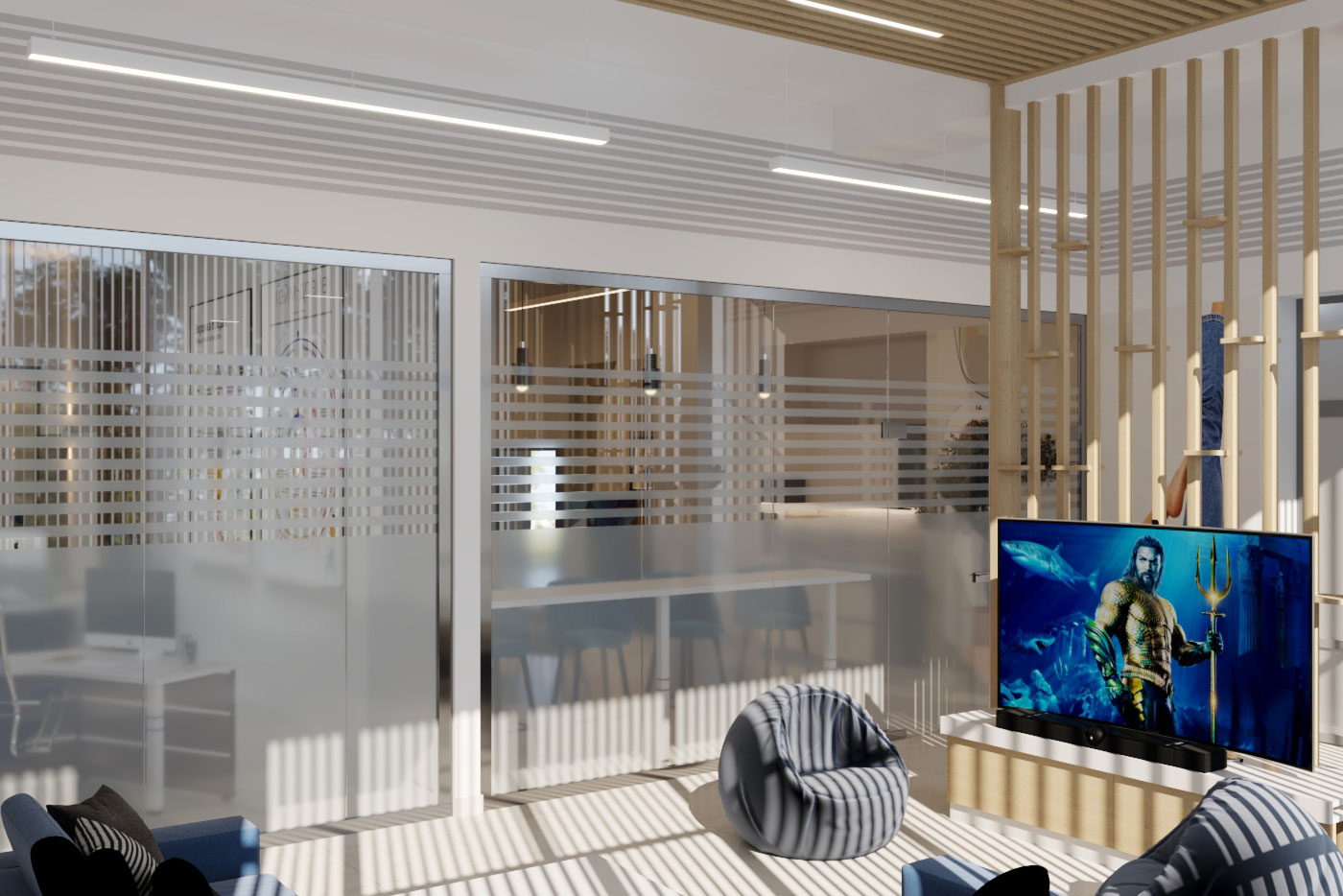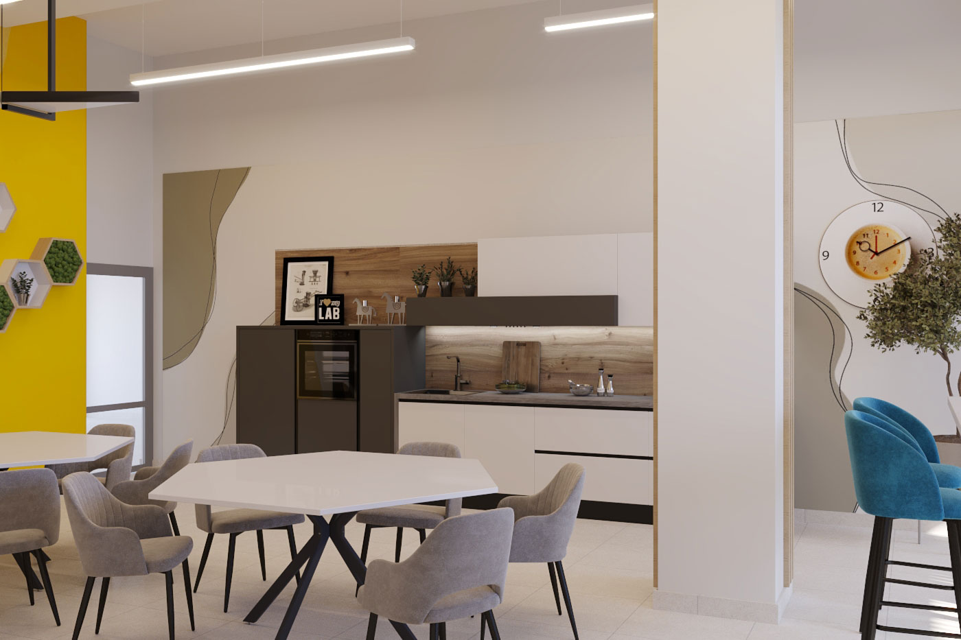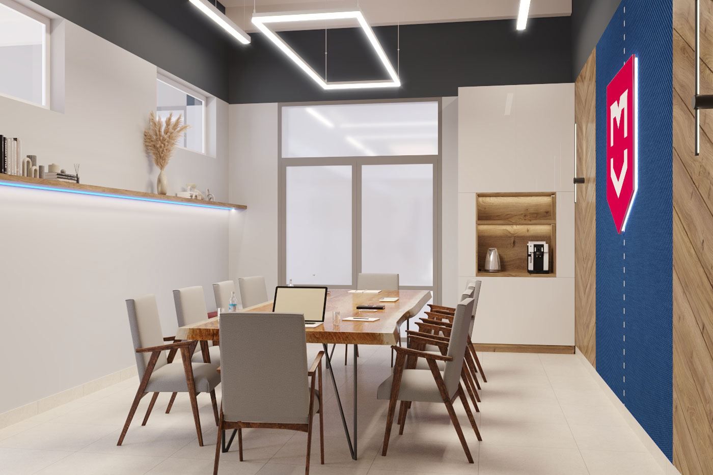 Виды работ: разработка дизайн-проекта офиса компании, 3-D визуализация, 3D тур по помещениям.