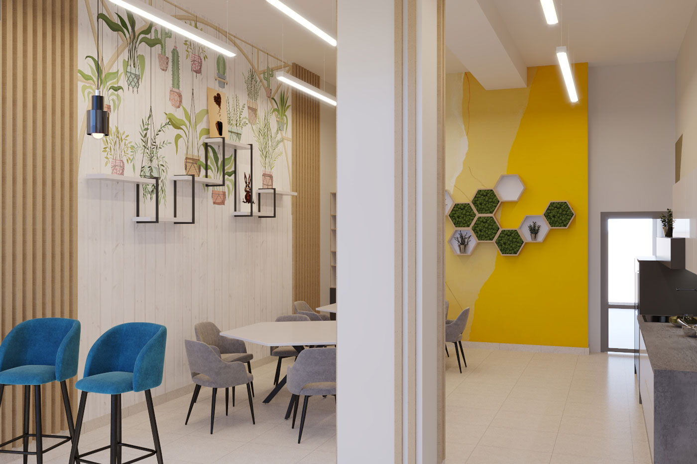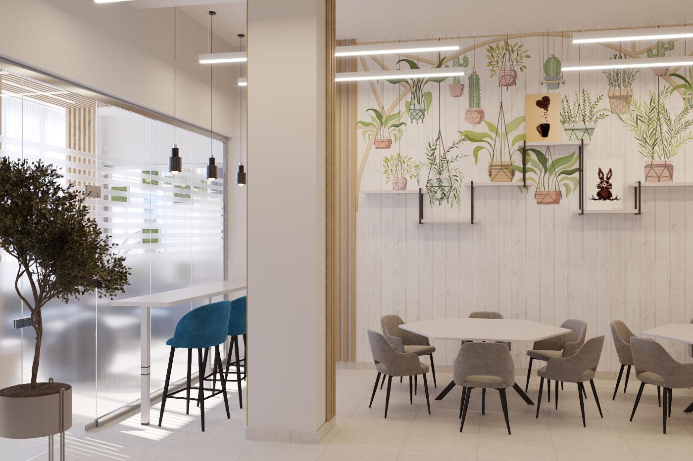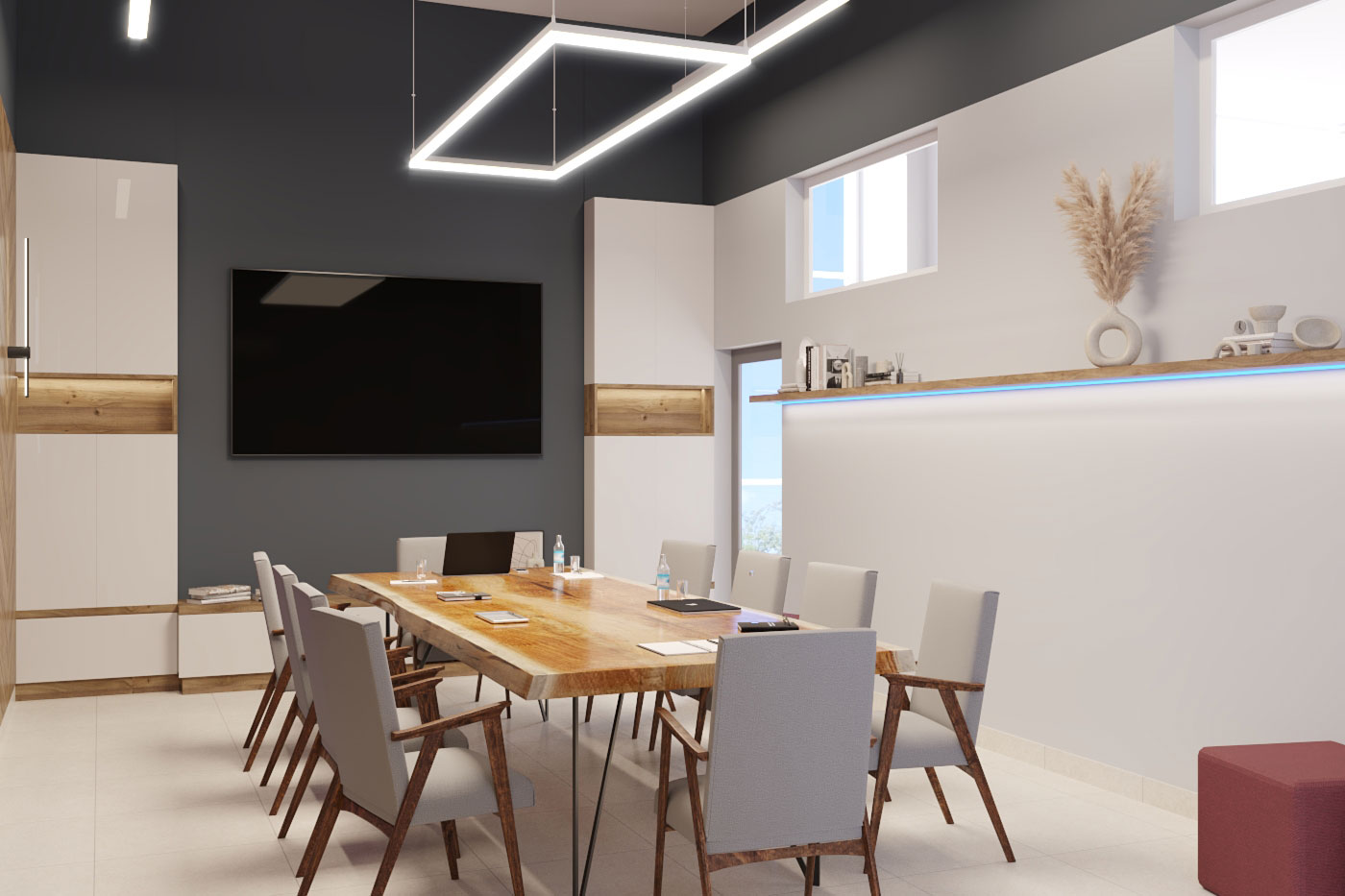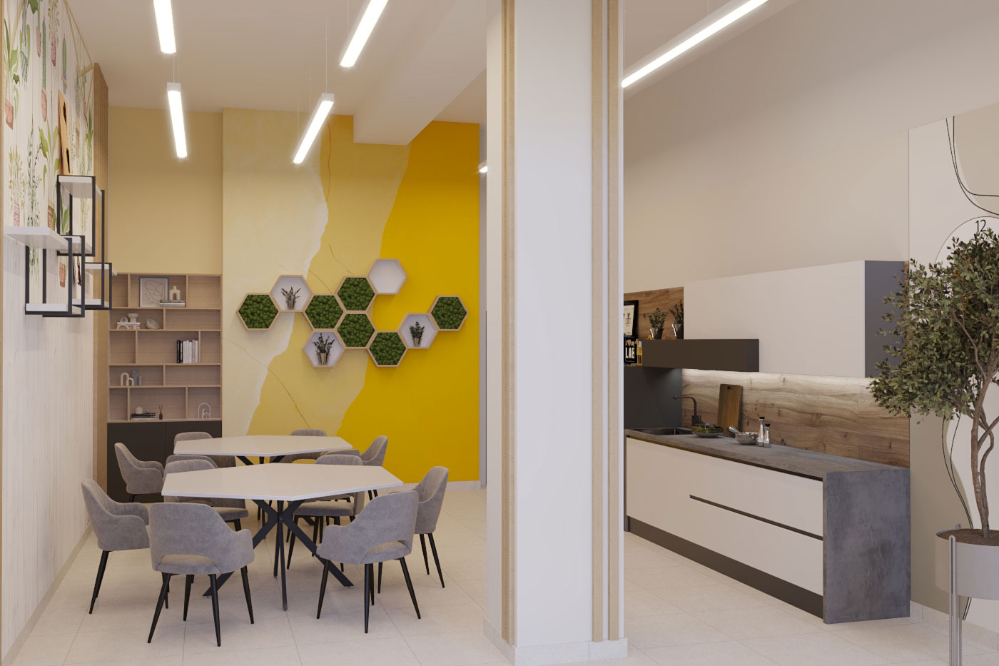 Виды работ: разработка дизайн-проекта офиса компании, 3-D визуализация, 3D тур по помещениям.